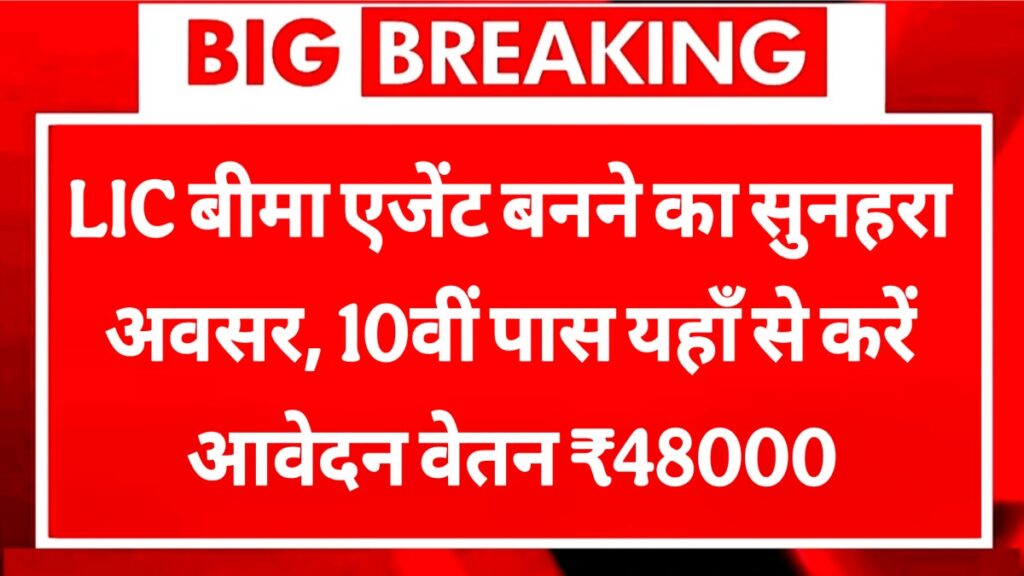 LIC Bima Agent बीमा एजेंट बनने का सुनहरा अवसर, 10वीं पास यहाँ से करें आवेदन वेतन ₹48000